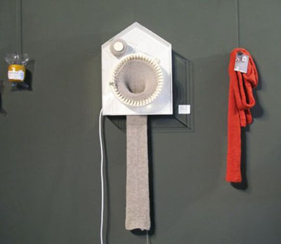 看到這樣的無厘頭創(chuàng)意,您是不是也覺得世界特別的美好呢?這是一個(gè)會(huì)織毛衣的鐘表,或者你也可以叫它能看時(shí)間的織布機(jī),總之這個(gè)看起來很蠢的家伙能告訴你時(shí)間,而且您在春天把它掛在墻上的話,秋天的時(shí)候就可以有一條兩米左右的新圍巾了。我想設(shè)計(jì)師并不是簡單的弄出了這個(gè)無厘頭的東西,他是想告訴我們,時(shí)間的流逝的力量是多么的強(qiáng)大,反正我是被震到了。