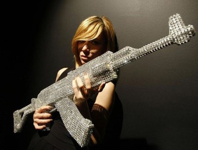 意大利雕塑家波拉(Nicola Bolla)日前在米蘭設(shè)計周展出,利用施華洛世奇(SWAROVSKI)水晶,做出AK-47步槍。