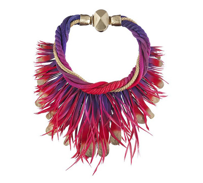 混合材質(zhì)的疊加運(yùn)用:羽毛、水晶、貝殼、珠鏈等元件的混合,讓這些首飾配件立即變得鮮活和生動起來,呈現(xiàn)很強(qiáng)的立體感和空間感。