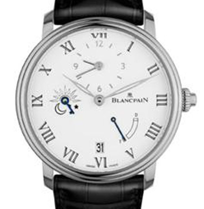 紋飾擺錘。備有白金和紅金型號,都配有鱷魚皮表帶。由寶珀勒布哈蘇機(jī)芯工廠專門開發(fā)研制的Calibre.5235DF機(jī)芯。