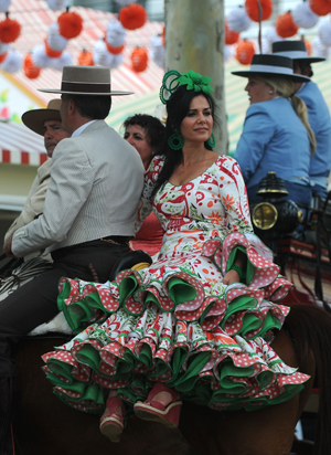 | 身穿傳統(tǒng)服飾的西班牙姑娘。新華社/法新 |