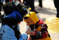 在這場(chǎng)狂歡盛宴中,我注意到不少都是全家出動(dòng),大人孩子從頭到腳都打扮得非常般配,看著那些可愛(ài)的親子裝,一家人其樂(lè)融融的樣子,頗讓人羨慕。雖說(shuō)孩子是“上帝派來(lái)索債的”,但孩子也是上帝的恩賜,尤其是在生育率持續(xù)走低的歐洲國(guó)家,一個(gè)家庭因?yàn)楹⒆拥牡絹?lái)而增添的樂(lè)趣是任何事情都不能比擬的。