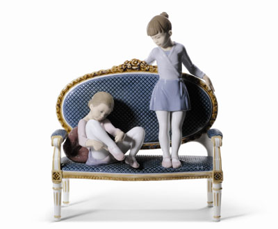 雅致作品《小舞鞋》展現(xiàn)了兩位小芭蕾舞者以不同的姿態(tài)在上舞蹈課前進行最后準(zhǔn)備的場景。在整件作品中,最搶眼的是這把承受了兩位小芭蕾舞者和自身重量的椅子。僅僅依靠四條纖細(xì)的椅子腿,就支撐起整件作品的重量,這無疑增加了作品在制作上的技術(shù)難度,尤其是在整個窯燒過程中如何保持作品穩(wěn)定而不坍塌。這件全球限量的作品是雅致今年兒童節(jié)的主打作品,既甜美又不失優(yōu)雅。