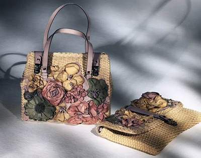 手工立體花朵裝飾的Valentino手袋是高超手工藝與相異材質(zhì)混搭碰撞的藝術(shù)品。皮質(zhì)手工花朵,經(jīng)過(guò)復(fù)雜程序和工藝的加工制作,花蕊與花瓣都生動(dòng)逼真、惟妙惟肖;草編手拿包搭配立體皮質(zhì)花朵與漆皮搭扣,輕松把玩各種材質(zhì)的精微變化,游離于硬朗與溫柔之間。