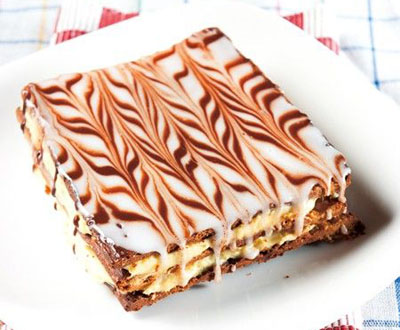 Cream——卡仕達(dá)醬(Custard)制成。材料雖然簡(jiǎn)單,但酥皮的制作過(guò)程卻極繁復(fù),耗時(shí)耗力,需要反復(fù)折疊再搟開(kāi)(上期雜志中有過(guò)具體介紹),卡仕達(dá)醬的不同口感也對(duì)拿破侖的整體風(fēng)味和口感有決定性的影響,所以要做出一款兩者兼優(yōu)的拿破侖也非易事。澳大利亞每年都會(huì)舉行拿破侖制作比賽,比賽中評(píng)選優(yōu)質(zhì)拿破侖的標(biāo)準(zhǔn)就是:“酥皮松脆,表層淋醬光亮,卡仕達(dá)醬細(xì)膩滑爽,香草味恰到好處”。