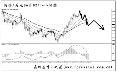 ▲美元兌瑞郎再度強(qiáng)悍創(chuàng)出新低,由于下方已沒有任何可以阻擋住匯價(jià)下跌的支撐位,所以我們無法根據(jù)價(jià)位來預(yù)測(cè)瑞郎何時(shí)能夠見底回升,F(xiàn)在短中線的主客觀方向均向下,操作只能是以繼續(xù)做空為主思路。首先關(guān)注圖中最近一條下降壓力線的阻力,預(yù)計(jì)美瑞突破此線的概率較大,進(jìn)而挑戰(zhàn)0.8550附近區(qū)域。