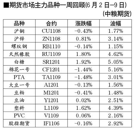 期貨市場主力品種一周回顧[6月2日-9日]