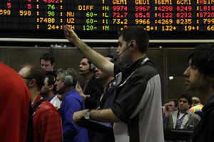 “每個手勢,放在身體的不同位置,都有不一樣的含義,這是交易員之間的語言” 蒙麗莎邊說邊給記者比劃——手掌心向著身體,表示買入;手掌心向外,表示賣出;手放在胸前,表示買入或賣出的價格,而手放在臉附近,則表示買入或賣出的數(shù)量。