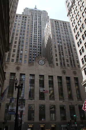 沿著芝加哥的“華爾街”——拉塞爾大街一路南行,當你發(fā)現(xiàn)自己無路可走的時候,就會看到一座氣勢宏偉的建筑聳立在面前,這就是全球最大的衍生品交易中心,也是這座城市引以為豪的坐標——芝加哥期貨交易所(Chicago Board Of Trade)。