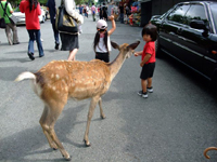 奈良鹿是奈良一絕,更是日本一景。沒(méi)有鹿群出沒(méi)的奈良將不可想象。明治時(shí)代官僚專治政權(quán)將野生鹿實(shí)施圈養(yǎng)的結(jié)果,使得鹿群數(shù)目曾一度劇減到36只。戰(zhàn)后時(shí)期,再次出現(xiàn)瀕臨滅絕,雖無(wú)明確的原因記載,鹿淪落成戰(zhàn)爭(zhēng)受害者成為饑民延命餐這樣的經(jīng)緯似不難臆測(cè)。