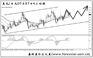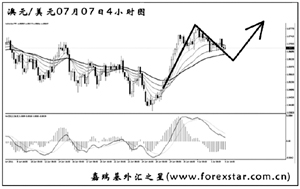 美元兌日元再一次對80.00的整數(shù)關(guān)卡挑戰(zhàn)失敗,目前短線震蕩上行,運(yùn)行在一個平緩的通道之中。日線圖均線系統(tǒng)已經(jīng)被小幅升穿,壓制效果已不明顯。預(yù)計匯價再度大幅下跌的欲望并不強(qiáng)烈,目前以小倉做多為主思路,但止損要嚴(yán)格放在圖中的通道下沿下方。