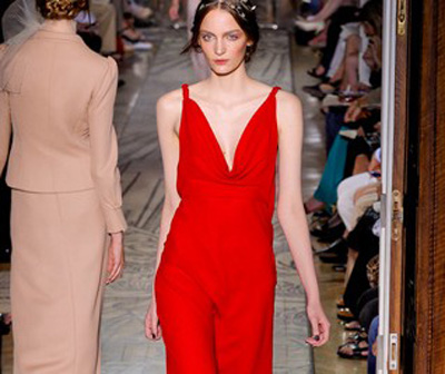 長(zhǎng)袖曳地禮服、及膝A字裙、肩線圓潤(rùn)的套裝……2011秋冬華倫天奴