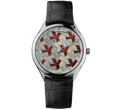 Escher(1898-1972)的畫作啟發(fā)──他是知名的雕刻家及圖像藝術(shù)家,擅長經(jīng)營結(jié)構(gòu)、建筑、觀點以及空間因為錯置而橫生的妙趣,也就是視覺上的“錯覺”。這款獨一無二的表,在表盤上有紅色與白色鴿子──兩種顏色正是“Only