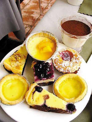 下午茶的點心因應本地口味添加了廣東人喜愛的各種小吃,如叉燒酥等
