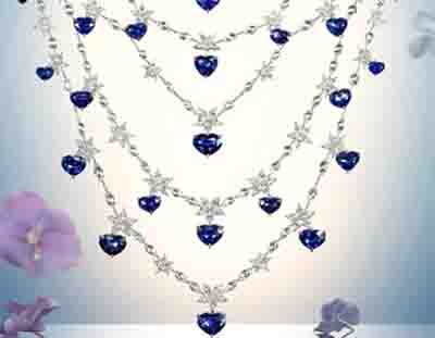 這款由形狀各異的鉆石與心形切割藍(lán)寶石組成的五排項(xiàng)鏈,完美詮釋了蕭邦高雅精致、無(wú)與倫比的高級(jí)珠寶創(chuàng)作傳統(tǒng)。