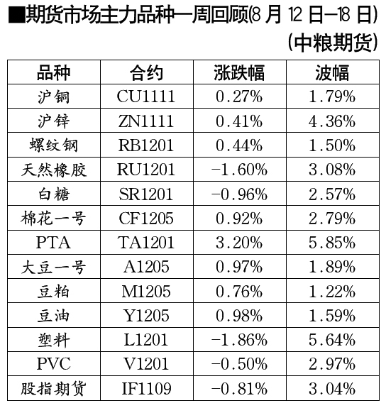 期貨市場主力品種一周回顧[7月29日-8月4日]