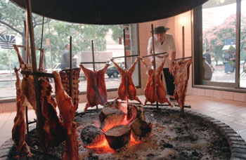 許多阿根廷人也喜歡自己在家做烤肉吃。德馬里奧夫婦常帶兩個兒子來吃“尼古的舞廳”,不過周末也會在家自己做。德馬里奧太太講,幾乎每個阿根廷父親都會烤肉,只是味道千差萬別;母親幾乎都會做醬汁,口味也千差萬別,各家獨特配方,常有創(chuàng)新。對阿根廷人來說,烤肉最大的樂趣在于一家人聚在一起,自己動手,不過要吃正宗地道的烤肉,還得去烤肉店。