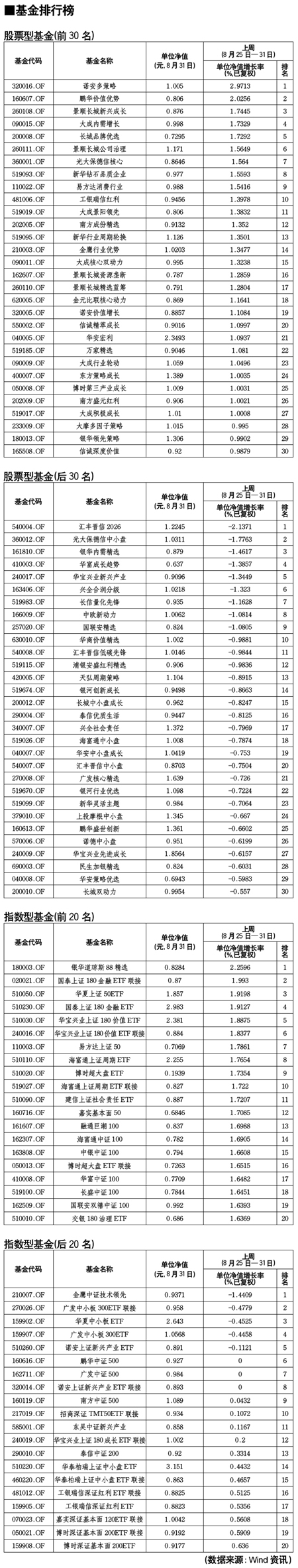 基金排行榜[2011-09-02]
