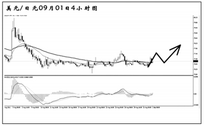 澳元兌美元經(jīng)過了一小段調(diào)整之后繼續(xù)上行,整體來看仍然在對此前的下跌進行修正,但圖中均線系統(tǒng)已經(jīng)形成依托排列,短線的漲勢再度確立。從動能角度考慮,后市澳元仍有進一步上沖的欲望。但再度突破1.1080的前方高點希望不大,如若做空需首先等待下跌動能的爆發(fā)方可進場。