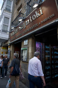 按照“旅游指南”的推薦,我們來到Vitoria最好的一家蘋果酒酒館,這家名為sagartoki的蘋果酒酒館是當(dāng)?shù)刈钪木起^。很多人來這里并不是沖著蘋果酒,而是這里的塔帕斯。