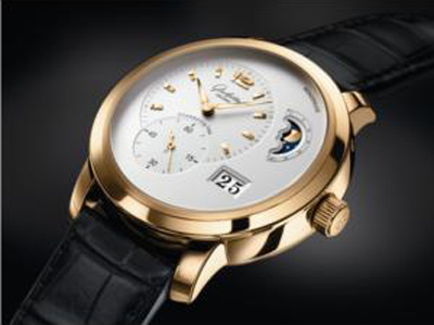 90-02自動上鏈機(jī)芯。它精心造就的元素,包括了四分之三夾板、鵝頸式微調(diào)、格拉蘇蒂刻紋和放射紋裝飾、以及來自格拉蘇蒂原創(chuàng)機(jī)械制表的優(yōu)秀工藝特征,都可以透過藍(lán)寶石水晶底蓋一目了然。