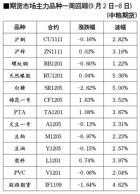 期貨市場主力品種一周回顧[8月26日-9月1日]