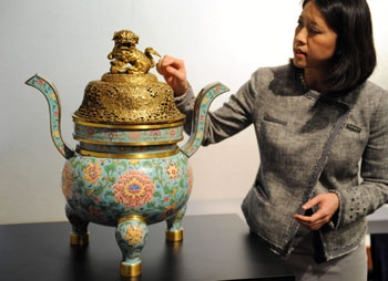 此次秋拍匯集了來(lái)自兩家香港私人收藏的珍貴拍品!皯押L谩闭洳氐牧咙c(diǎn)是一對(duì)清乾隆綠地粉彩描金云蝠花卉紋如意萬(wàn)壽綬耳瓶,估價(jià)為3500萬(wàn)至4500萬(wàn)港元;銅胎畫(huà)琺瑯器收藏的亮點(diǎn)是一件清雍正銅胎畫(huà)北京琺瑯孔雀藍(lán)地纏枝花卉紋朝天耳三足獅鈕蓋爐,估價(jià)也為3500萬(wàn)至4500萬(wàn)港元。