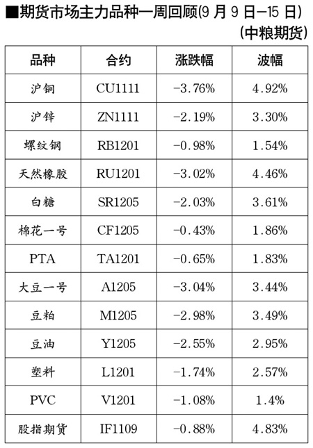 期貨市場主力品種一周回顧[9月9日-15日]