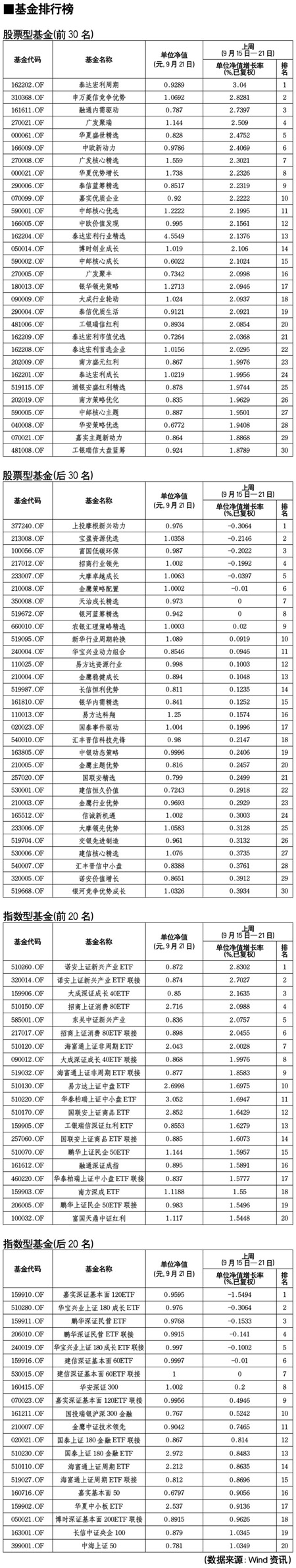 股票型基金排行榜[2011-09-23]