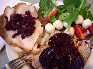 在溫暖的夏天,丹麥人也同樣喜歡食用脆皮烤豬肉,但吃法不同。這時,丹麥人會將事先烤好的脆皮烤豬肉放涼后切成一片片的薄片,然后放在黑面包上,加上新鮮蔬菜,就做成一個“開放式三明治”。開放式三明治是冷餐,這樣吃下去,不會大汗淋漓,既解決了肚子的溫飽問題,在夏季里享受到節(jié)日美味,又清涼可口,不會太油膩,也不會上火。