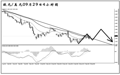 歐元兌美元對(duì)此前的下跌進(jìn)行修正。目前匯價(jià)上行回調(diào),正在考驗(yàn)下降趨勢(shì)線的壓制力,此前MACD的底背離發(fā)揮了一定的效果。歐元上方的道氏點(diǎn)阻力在1.3935,預(yù)計(jì)匯價(jià)突破此點(diǎn)位的希望不大,未來一周歐元將以沖高后繼續(xù)下落的走勢(shì)為主。