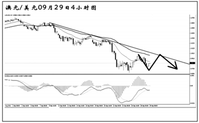 澳元兌美元短線的下跌趨勢(shì)仍然延續(xù)。從日線圖上看,現(xiàn)在匯價(jià)處于大C浪下跌之中,調(diào)整基本到位。但澳元在下降趨勢(shì)線和均線系統(tǒng)的壓制作用下持續(xù)走弱,目前尚不能大膽預(yù)計(jì)匯價(jià)會(huì)出現(xiàn)明顯的反彈。關(guān)注阻力1.0000一線,只有澳元突破此位置,才會(huì)發(fā)生更為明顯的調(diào)整。