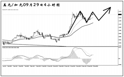 美元兌加元經(jīng)過一個(gè)多月的盤整之后再度大幅上沖,筑底宣告成功。匯價(jià)延續(xù)了上漲的主趨勢(shì),均線系統(tǒng)多頭排列,而日線圖的MACD也顯示出多頭動(dòng)能強(qiáng)勁,交易上可繼續(xù)在次要節(jié)奏調(diào)整出現(xiàn)后做多。由于上方近期沒有明顯的阻力位,匯價(jià)的上行空間較為廣闊。