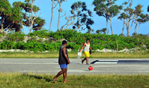 這樣一改就帶來了許多問題,因為人們會隨時隨地橫穿機場跑道。這難道不是一件挺危險的事情嗎?因為兩條道路都在機場內(nèi),中間只隔了一條綠化隔離帶,而全國大部分人口又都居住在機場兩側(cè)。好在這里一個星期只有兩班飛機,而且島國也沒什么大型機車,這里的主要交通工具是摩托車,所以汽車還不至于把飛機“絆倒”。
