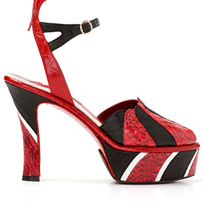 以高檔皮具聞名世界的西班牙品牌Loewe 2012春夏帶來粗細(xì)適中的高鞋跟,有了前端防水臺的設(shè)計讓舒適度陡增。 這一季,Loewe在鞋子的設(shè)計上除了蛇紋拼接的處理以外, 更以抽象的概念將整體花紋構(gòu)建出結(jié)構(gòu)清晰的視覺感官,讓每一雙鞋都堪稱藝術(shù)精品。