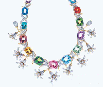 TIFFANY的設(shè)計(jì)師認(rèn)為,自然界是最好的珠寶設(shè)計(jì)師,TIFFANY的設(shè)計(jì)師們從來善長于運(yùn)用自然元素,為TIFFANY的追隨者們帶來無數(shù)的驚喜。集合了來自世界各地的所有16顆彩色寶石的茉莉花項(xiàng)鏈,是TIFFANY設(shè)計(jì)師、寶石詩人Jean Schlumberger的杰作,9朵茉莉花與16顆炫麗寶石相映成趣,想像著9朵茉莉花繞于頸間,是否感受到那一陣陣茉莉花香帶來的清雅脫俗?