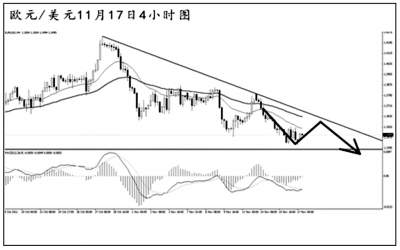 歐元兌美元受到下降壓力線和均線系統(tǒng)的雙重壓制,短線繼續(xù)下跌。MACD出現(xiàn)了底背離信號,歐元面臨一定的回調(diào)壓力。但是從日線圖上看,空頭動能仍然充盈,歐元上調(diào)將考驗趨勢線的阻力1.3650一線。操作上做空仍然是順勢,如若做多屬于抓反彈的交易,倉位需要降低。