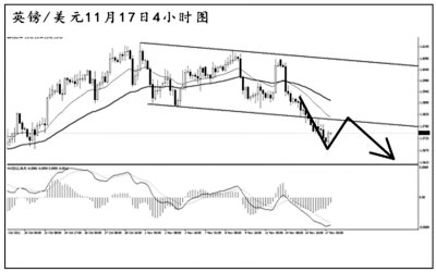 英鎊兌美元最近一波猛烈的下跌將圖中震蕩通道的下沿跌破,下跌空間被進一步打開。英鎊短線有回抽通道下沿的欲望,阻力在1.5810一線。小時圖匯價的主下行趨勢保持良好,雖然出現(xiàn)了一定的動能減弱信號,但預(yù)計后市英鎊仍將以沖高回落的走勢為主。