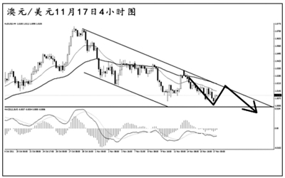 澳元兌美元沿圖中的下降通道緩步下行,均線系統(tǒng)壓制排列。匯價短線頻創(chuàng)新低,后市繼續(xù)發(fā)生下挫的概率較大。澳元上行回調(diào)的阻力為通道上沿,位置在1.0200一線下方。預(yù)計匯價小幅上調(diào)之后仍將以下跌為主,逐步向通道下沿一帶挺進。