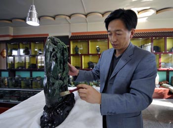 如今,劉宏收藏的碧玉原石有幾十噸之多,他所經(jīng)營的“瑪河玉都”已經(jīng)成為一個集碧玉原石收集、銷售、設計、雕刻、批發(fā)、零售為一體的碧玉生產(chǎn)、銷售龍頭企業(yè),被當?shù)卣椤坝袷c采購單位”。