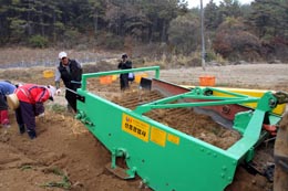 在利川,我們看到大片金黃色的人參田,農(nóng)民在田里勞作。如今收獲人參實(shí)現(xiàn)了機(jī)械化,幾輛大型的工作車輛沿著耕地渠道緩緩開過,將深埋地下的人參翻起至地表,這個過程需進(jìn)行兩次,一次深一次淺,以便在不傷害到嬌弱人參的前提下,將全部人參挖出。接著,農(nóng)民們再手工將挖出的人參裝入大籮筐,搬上運(yùn)輸車輛運(yùn)走。