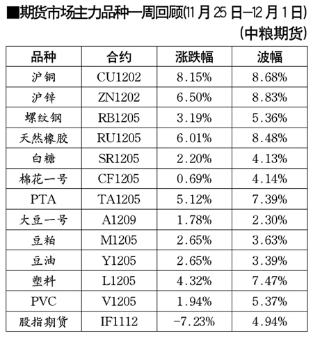 期貨市場(chǎng)主力品種一周回顧[11月25日-12月1日]