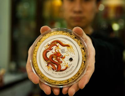 “龍年”將至,吉林省長春市各大金店的柜臺中,以“生肖龍”為主題元素的各類貴金屬紀念品也紛紛上架銷售。因中國人自古便以龍作為圖騰崇拜,所以這些“生肖龍”紀念品一上市就受到熱捧,吸引了許多收藏者前來選購。