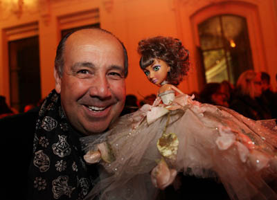 圖為法國(guó)設(shè)計(jì)師Max Chaoul展示自己設(shè)計(jì)的洋娃娃。
