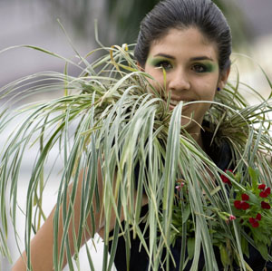 在哥倫比亞卡利市舉行的生態(tài)時裝展上,一名模特展示設(shè)計師作品。據(jù)悉,本次時裝展上展出的所有服裝都是用天然材料和活植物制作的。