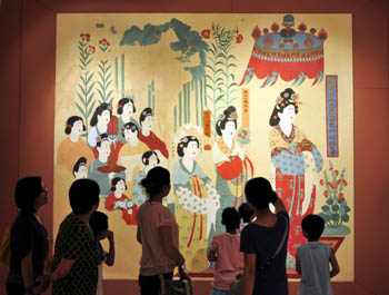 今夏“博蘊華光敦煌藝術(shù)展”在深圳開展,展覽展出內(nèi)容主要包括原大敦煌石窟復(fù)制洞窟、壁畫臨本、藏經(jīng)洞絹畫復(fù)制品、彩塑復(fù)制品、精品文獻(xiàn)等。新華社發(fā)(賀友保/攝) |