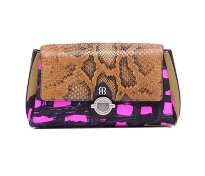 Balenciaga 2012春夏手袋系列顛覆以往常規(guī)的包款,迥異的用色和造型讓人耳目一新。性感彩色蟒蛇紋、小清新氣質(zhì)編織、皮革帆布拼接的面料選擇,配合摩登紅、水手藍(lán)等多種色彩呈現(xiàn)出前衛(wèi)的風(fēng)格。