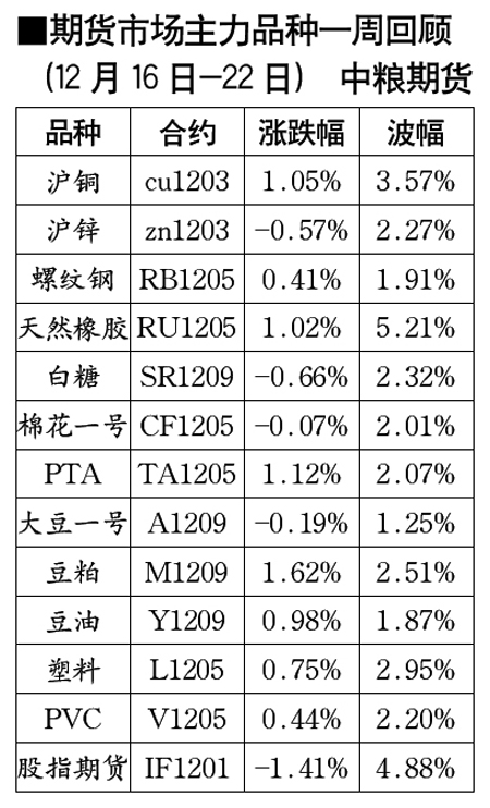 期貨市場(chǎng)主力品種一周回顧[12月16日-22日]