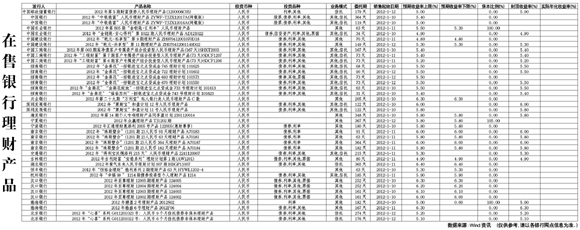 在售銀行理財(cái)產(chǎn)品[2012-01-06]