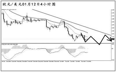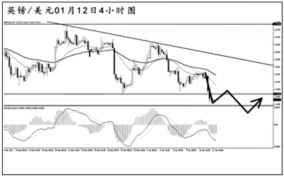 歐元兌美元的下跌勢頭保持完好,4小時圖的均線系統(tǒng)和下降趨勢線雙雙壓制匯價。歐元短線也發(fā)生了動能減弱的信號,且匯價距離趨勢線阻力較遠(yuǎn),有一定的上調(diào)欲望。首先關(guān)注1.2820一線阻力,若升破此位置,下跌趨勢將暫告一段落,否則后市歐元仍將繼續(xù)創(chuàng)出新低。